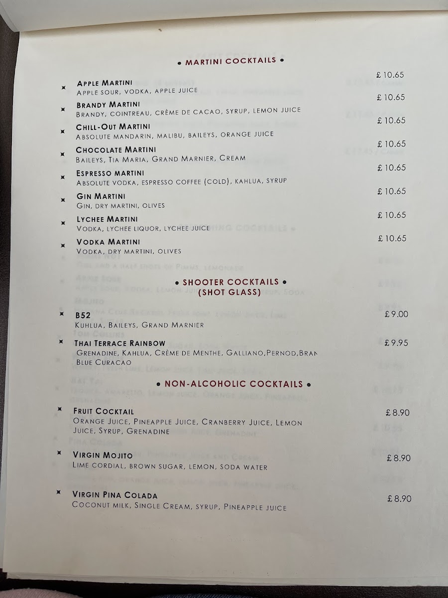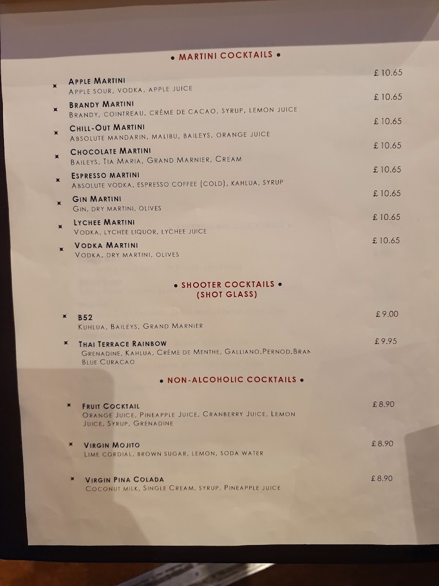 The menu boasts a variety of tantalizing options, from the Prawn Version Of The Pudd to vibrant Thai Bento Boxes, catering to both vegetarians and enthusiasts of mixed delights. Don't miss the chance to savor signature Martini Cocktails, each priced at just £10.65, offering a refreshing twist on traditional favorites.